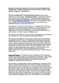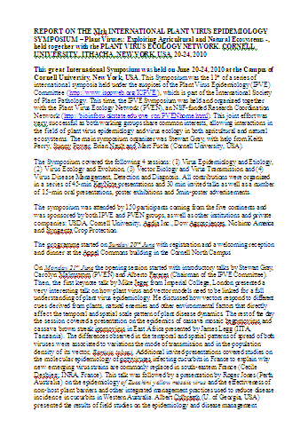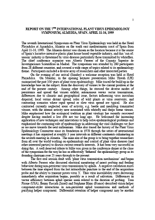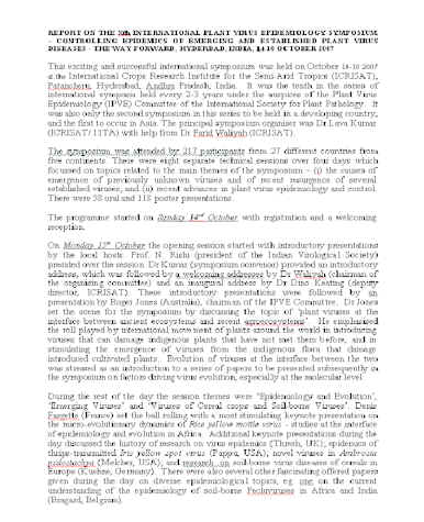 INTERNATIONAL PLANT VIRUS EPIDEMIOLOGY SYMPOSIUM,