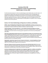 XVth INTERNATIONAL PLANT VIRUS EPIDEMIOLOGY SYMPOSIUM,