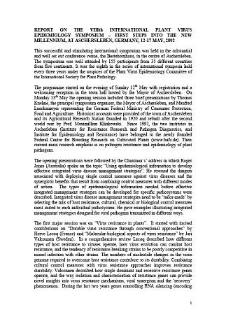 INTERNATIONAL PLANT VIRUS EPIDEMIOLOGY SYMPOSIUM, ASCHERLEBEN